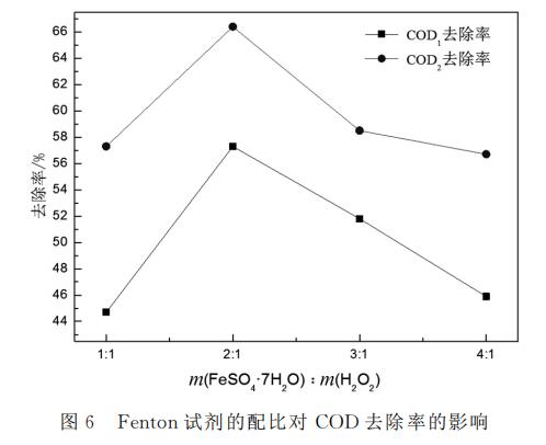 3.4.2 Fenton试剂的配比对COD去除率的影响